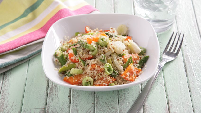Quinoa con tigueros, cebolleta y pimiento rojo